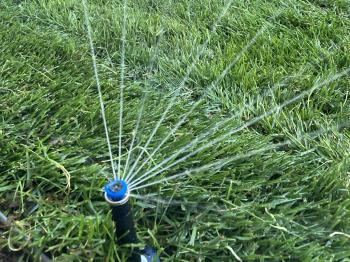 Paver walkway with neatly clipped shrubs and yellow daylilies